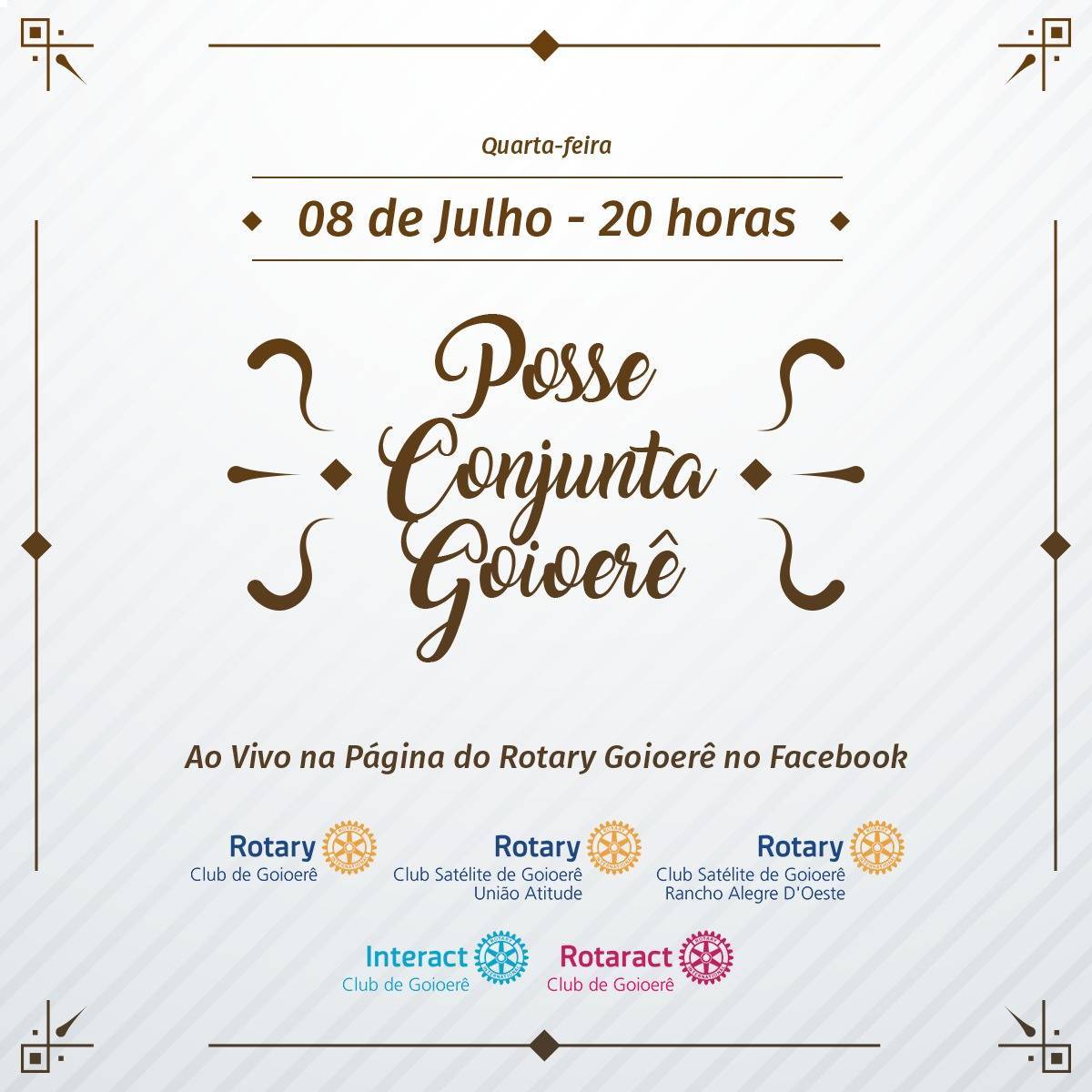 A transmissão ao vivo será pela página do Rotary Club de Goioerê no Facebook.